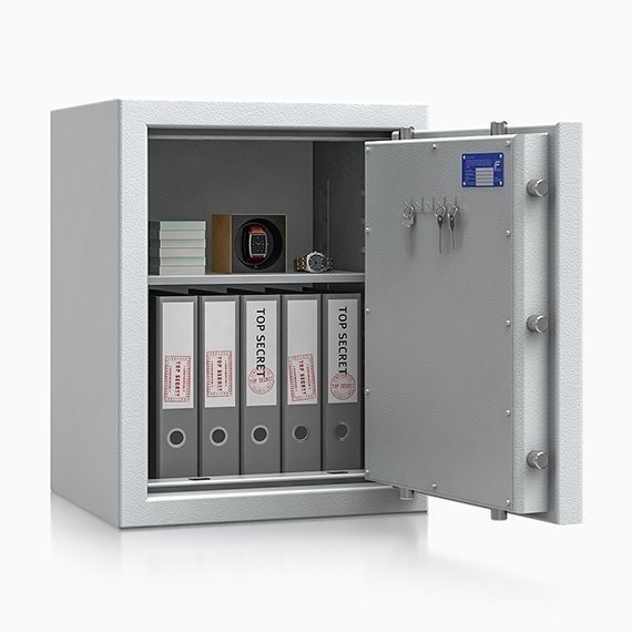 Bezpečnostní třída II Trezor S4E je víceplášťový trezor s korpusem tloušťky 50 mm, vícevrstvými dveřmi a rozvory do 4. stran.