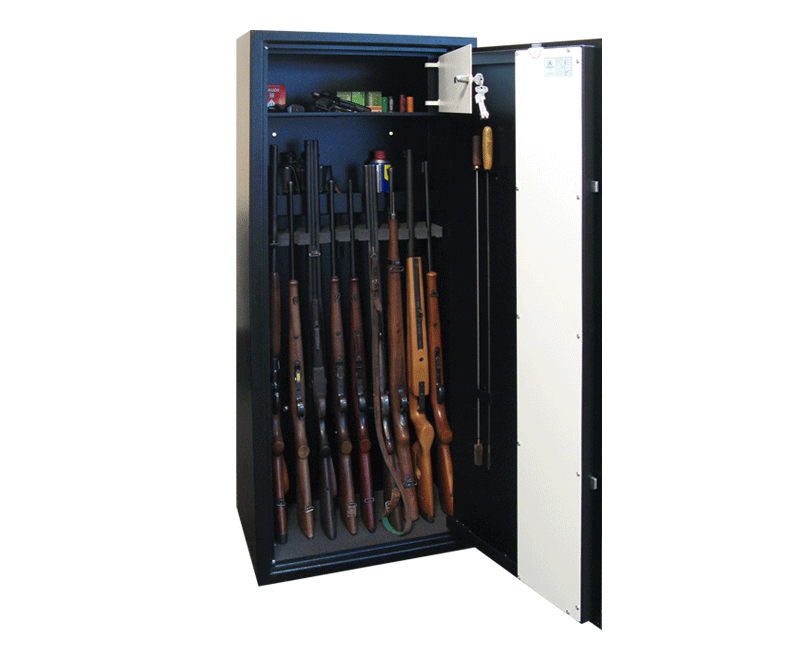 Skříně jsou určeny k úschově loveckých a sportovních zbraní. Vyrábějí se jako jednoplášťové ve dvou velikostech SZ 6 na 4 – 6 zbraní a SZ 10 na 6 -10 zbraní. Jsou vybaveny třemi odkládacími poličkami a držáky na vytěráky ve dveřích skříně, hlavně zbraní jsou upevněny ve speciálních držácích. Skříň je zhotovena z plechu tloušťky 3 mm. Souběžně se vyrábějí jednodušší a levnější skříně z plechu tloušťky 2 mm s odkládací poličkou za hlavněmi zbraní. Hlavně jsou uchyceny v pěnových držácích. Skříně jsou dostupné ve velikostech SZ 1 na 4 zbraně, SZ 2 na 6 zbraní, SZ 3 na 10 zbraní. Všechny typy jsou vybaveny vnitřní uzamykatelnou schránkou na střelivo a jsou osazeny třístranným trezorovým zámkem MAUER nebo STUV, na přání lze skříně osadit mechanickým kombinačním, případně elektronickým zámkem. Pro úschovu krátkých zbraní se vyrábějí i sejfy v provední k zazdění SSZ nebo v provední nábytkovém k ukotvení do stěny NSZ. Oba typy jsou rovněž vybaveny vnitřní uzamykatelnou schránkou. Základní barevné provedení skříní i sejfů je strukturní barva RAL 9002 (šedobílá) nebo RAL 9005 (černá). Na přání lze skříň vybavit čalouněním a doplňky zelené barvy.