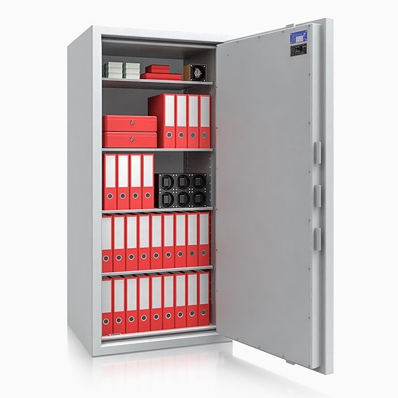 Trezor této řady má korpus trezoru i dveře dvouplášťový. Meziplášťový prostor je vyplněn soustavou ocelových výztuží a ohnivzdorným materiálem.