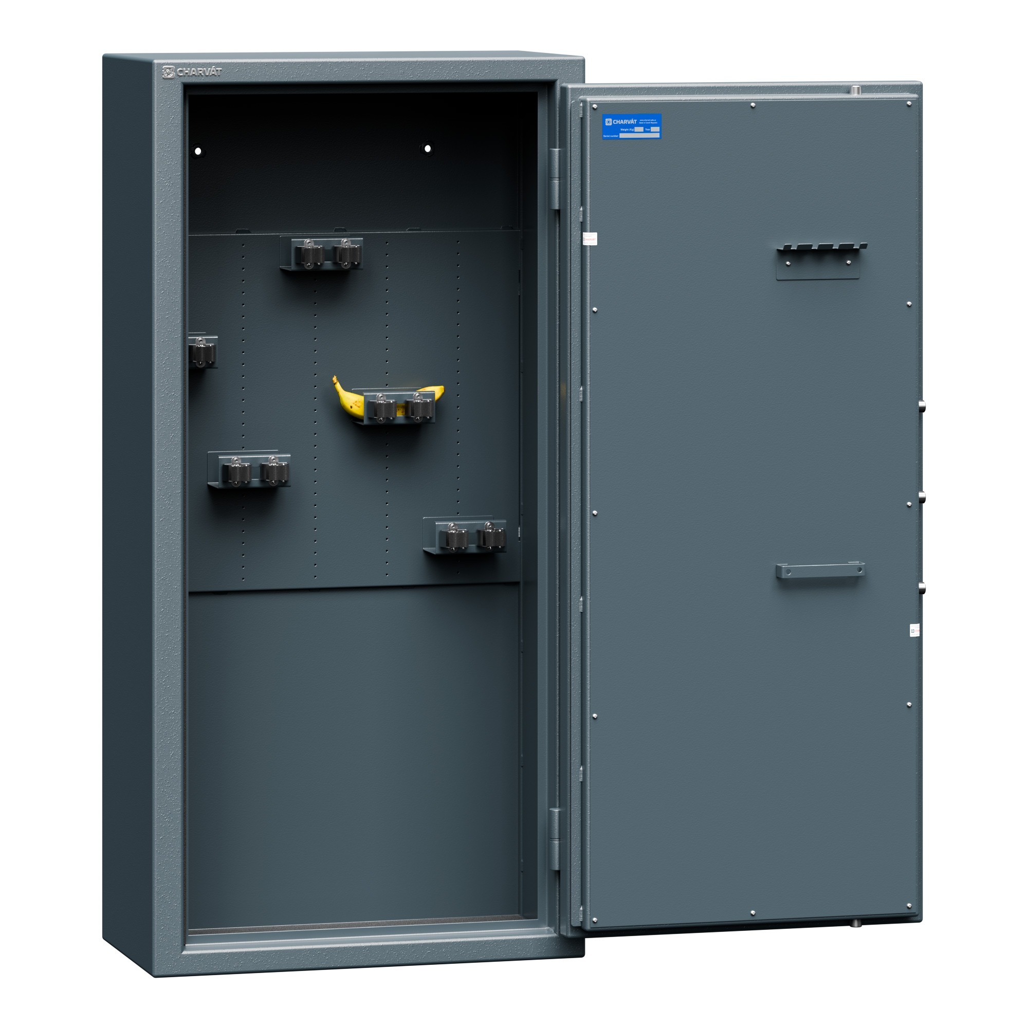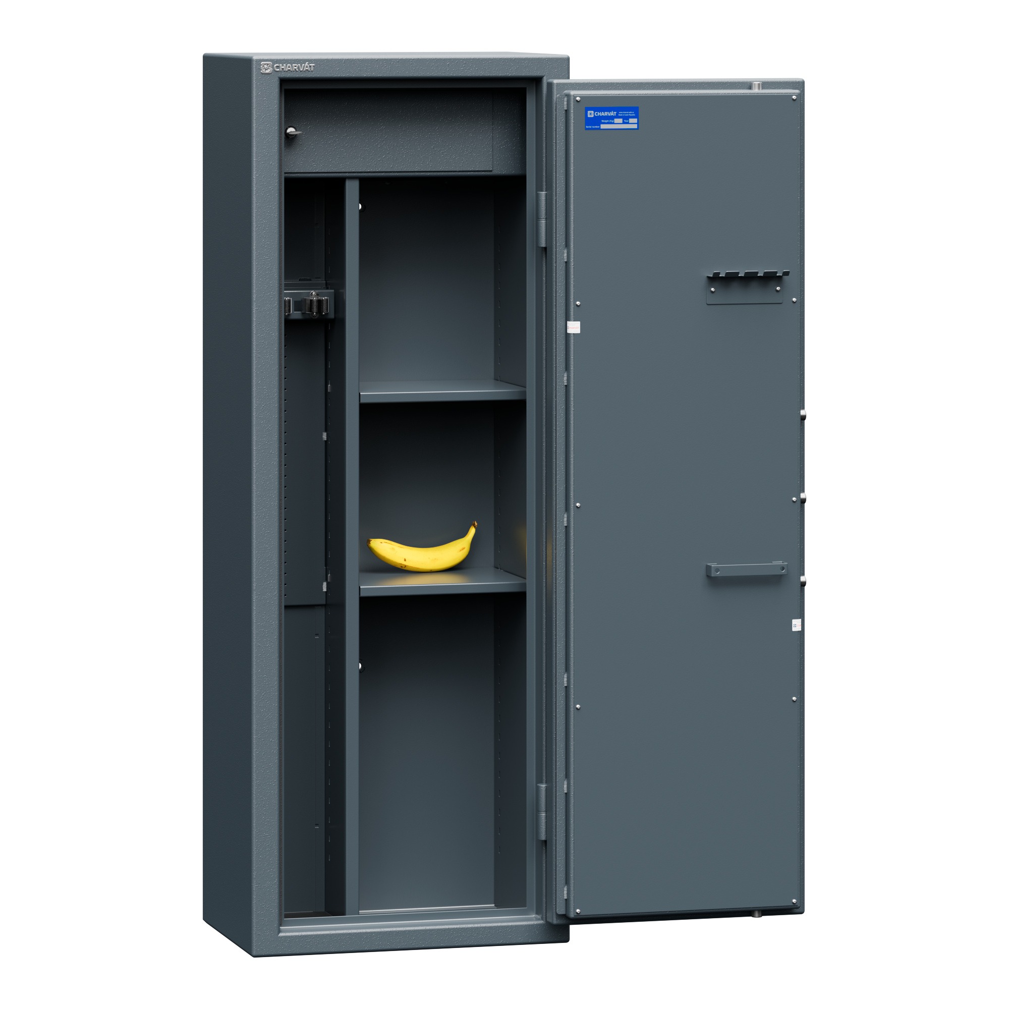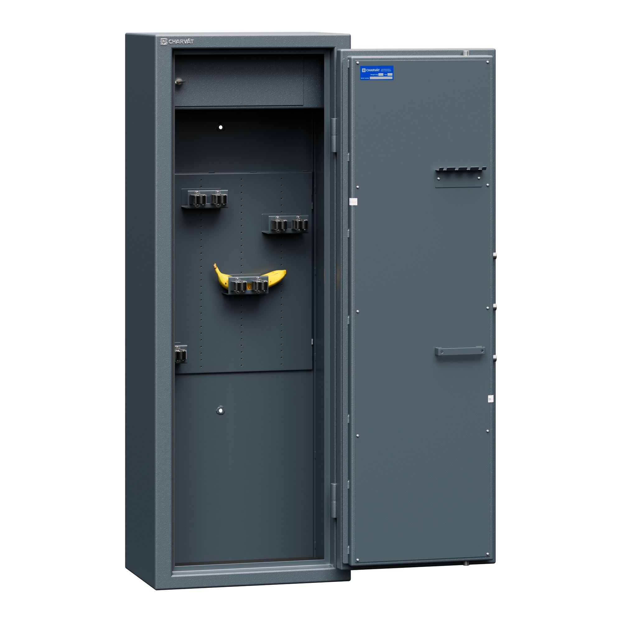 — Krátké zbraně lze pohodlně ukládat na police v pravé části trezoru.